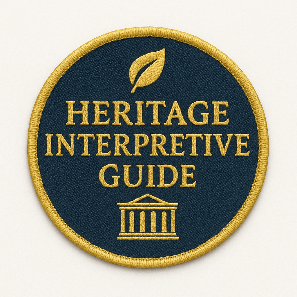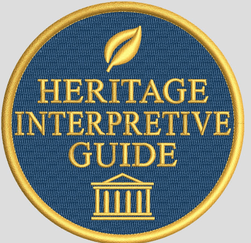 Order Heritage Interpretive Guide 3 inch Iron-on Patches – minimum of 10 for free shipping (may be in combination with pins) – You must have completed a HIG/HEART Trainers’ Course with Tim Merriman or an authorized trainer to order pins. If you order without that authorization, your funds will be returned. If you need fewer than ten, order the number you need and I will ask you to pay for shipping via invoice later. All shipping is by USPS Priority Mail to ensure 3-day delivery in the U.S.
